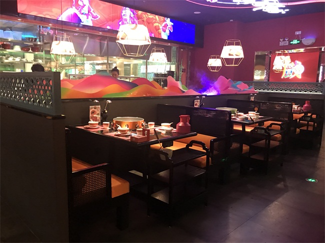 卡座:戲鳳記所定制的是以中式簡約風主題的餐廳卡座沙發,以黑褐色不銹鋼金屬為骨架,加入淡雅的鵝黃色坐墊,擁有非常好的承重力,不輕易變形且坐起來舒適。既包含了柔美的細節,也不失線條硬朗的風格,透露出一種特殊的韻味。它既符合了我們現代人的生活習慣,又為餐廳增添了幾分古典氣息。簡約有溫度!這樣的配置可以讓顧客更加舒適的用餐。