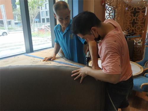 營銷總監(jiān)帶著業(yè)務(wù)員和跟單員一起給客戶送首件椅子樣板,餐飲公司的董事長為我們海德利團隊的敬業(yè)精神豎起大拇指大加贊賞。并在現(xiàn)場親自檢測椅子的質(zhì)量和工藝品質(zhì)。