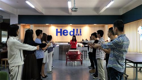 在每天的晨會中,我們通過讓海德利小伙伴參與隊形隊列的訓練來提升士氣,通過朗讀《弟子規》和《海德利企業文化》來吸收精神糧食,通過表彰工作中優異表現的小伙伴來傳遞正能量。