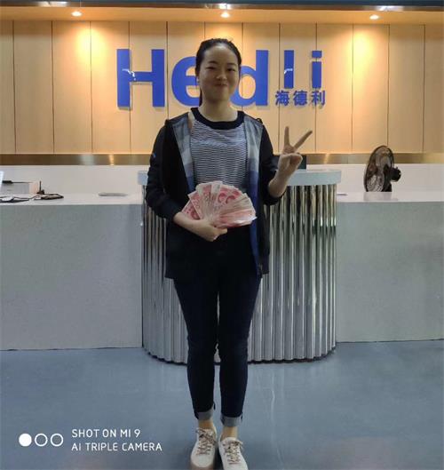 在朗讀《弟子規》或者《海德利企業文化》時,我們對第一個脫稿背誦的員工進行獎勵,獎勵金額在300-800元之間,這樣大大激勵了海德利人的學習勁兒。如果有小伙伴在工作中表現突出,更會在晨會上受到表彰,甚至獲得現金獎勵。記得海德利廠長張國華大哥在完成“豐都火鍋店”的所有家具生產和安裝后,因沒有出現任何差錯而受到客戶的認可,回到工廠后,領導在晨會上表揚優秀的個人和團隊,給予現金獎勵。還有一個海德利小伙伴在采購工作中通過自己的努力,為企業節省一筆不菲的支出,因此,海德利領導對這個這個小伙伴給予現金獎勵。