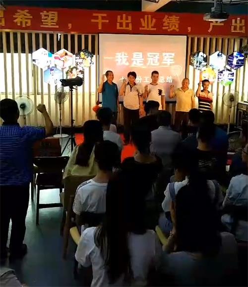 最后一個接受表彰的是車間木工部的新任主管王福小伙伴,雖然個子不大,但做事態(tài)度很積極,勤奮務實,接地氣,為大家樹立好榜樣,接受表彰當之無愧。接下來是業(yè)務部經(jīng)理符紅兵,對部門業(yè)績僅個人業(yè)績進行總結并分享了自己的成果與成功歷程。只要朝著自己的 努力拼搏,相信一切皆有可能。最后是表達各個部門努力拼搏干業(yè)績的決心;都由各部門負責人做代表上臺進行宣誓表決“只要相信,我就是冠軍,我一定能成為冠軍!”表彰大會完滿結束!