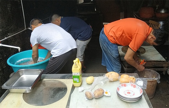 下午所有菜品到位,行政谷經(jīng)理安排車間各主管干部去食堂洗菜、切菜,沒想到這群工藝精湛的干部放到廚房也是如此厲害!他們刀工一流、菜品陳列也很規(guī)范,完全是大廚的風(fēng)范!這時(shí),谷經(jīng)理忍不住賦詩一首:“四大名廚聚一堂,摘揀洗切備菜忙。女主過節(jié)男神幫,相親相愛情意長(zhǎng)。”大家聽完,哈哈大笑起來,都夸贊咱們的谷經(jīng)理文武雙全!