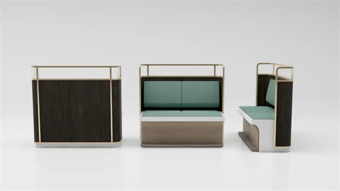 不銹鋼卡座框架上面用亞克力裝飾,使得每一張卡座的弧度顯得很柔軟,貼身的皮革軟包,讓整個卡座很有貴氣。