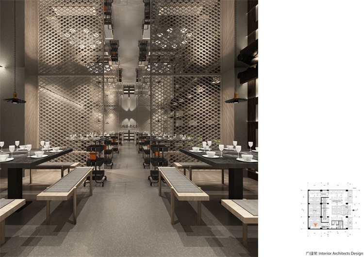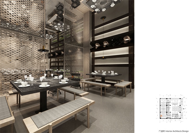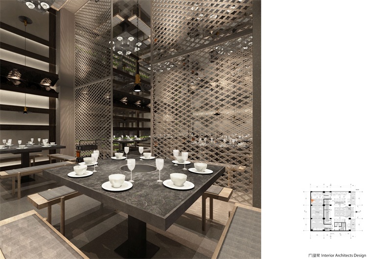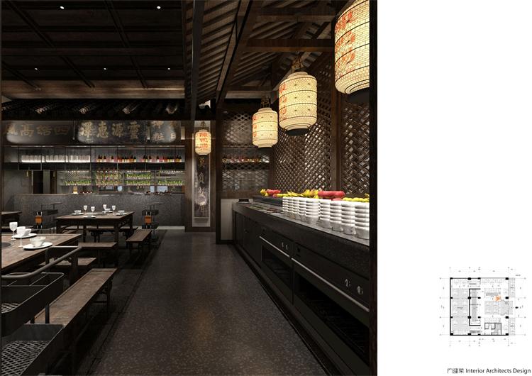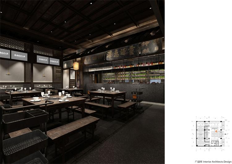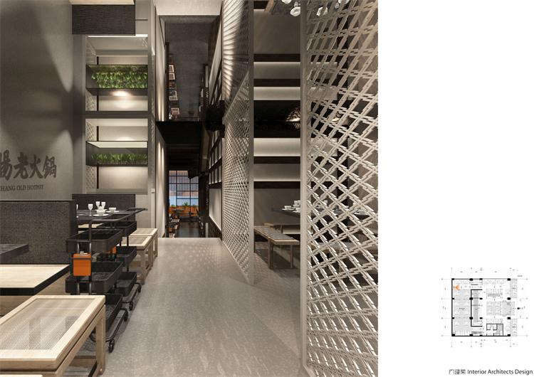 中華美食講究各種味道,各種食材,在適合的時間、溫度、空間里完美相容,從而煥發出全新的視覺與味覺體驗。考慮到陳鴨腸老火鍋的品牌文化,本案特意從中華文化的感悟與國際視角,在創新中融匯傳承,在傳統中融入時尚,為食客們打造光隨風行,色隨味動,移步異景,富有生命力的餐飲空間。