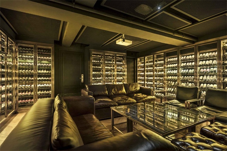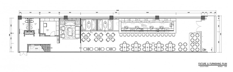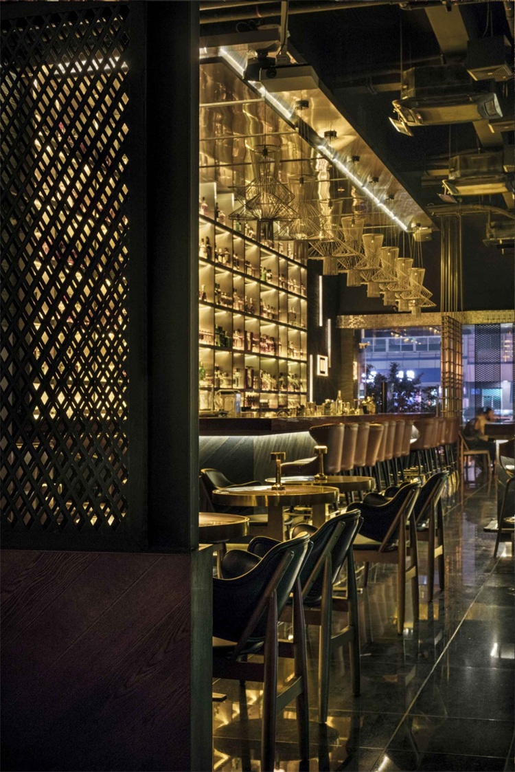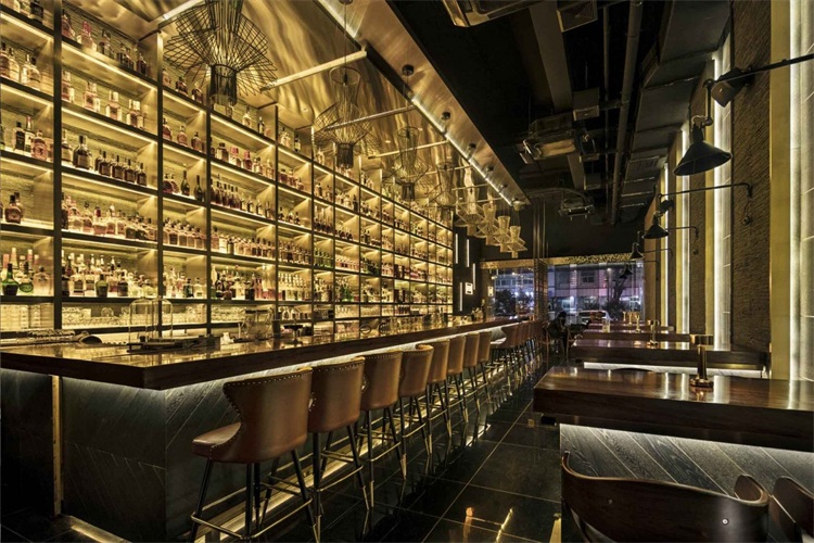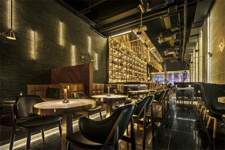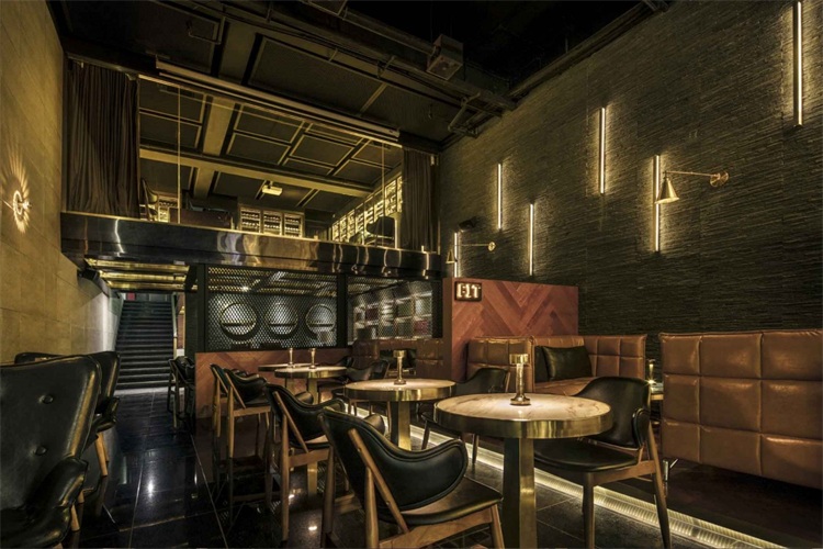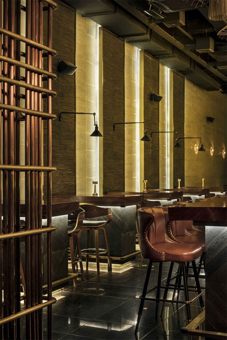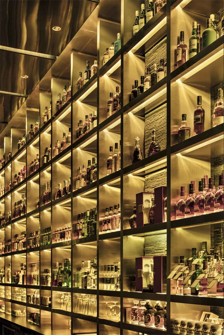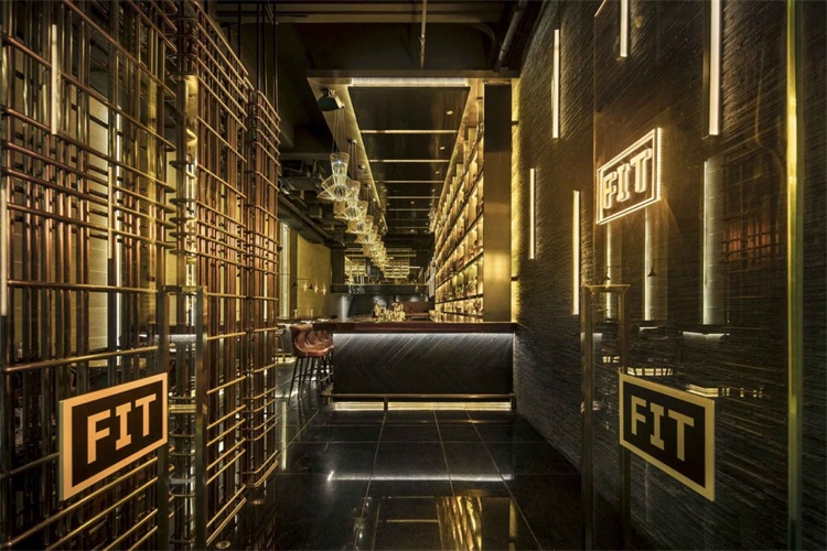 本案的設計思路是基于新現代主義的思路去構思,一切回歸到威士忌酒吧氛圍的本質和內核文化的訴求;而非市面上所普遍看到那種重裝飾的“復古”威士忌酒吧。我們總體的邏輯是基于場地的特殊層高以及現場的超長進深展開設計的思考。設計的全深圳最長的實木吧臺酒柜已成為FIT酒吧的標志性名片。