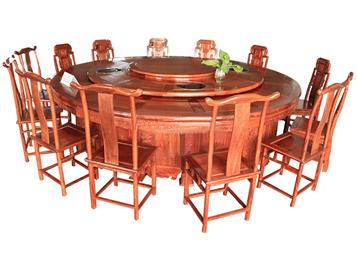 高端圓形帶轉(zhuǎn)盤火鍋桌_白鳥雕花每人每鍋實木電動火鍋餐桌
