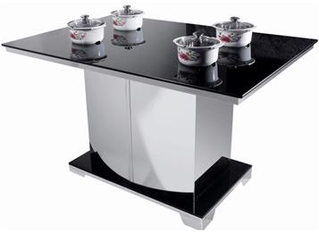 一人一鍋多人位鋼化玻璃隱藏式電磁爐火鍋桌