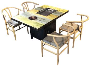 炭燒木燒烤桌 美式鄉村鐵藝實木火鍋燒烤一體桌