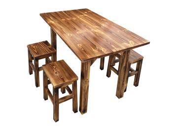 實木八仙桌椅組合 碳化木仿古中餐廳長條桌
