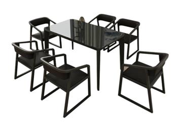 水曲柳實木餐桌椅組合 黑胡桃木色主題餐廳桌子