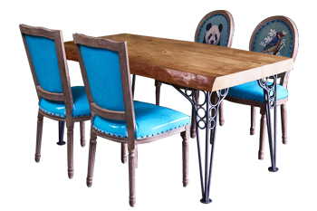 復(fù)古鐵藝創(chuàng)意西餐廳實木桌